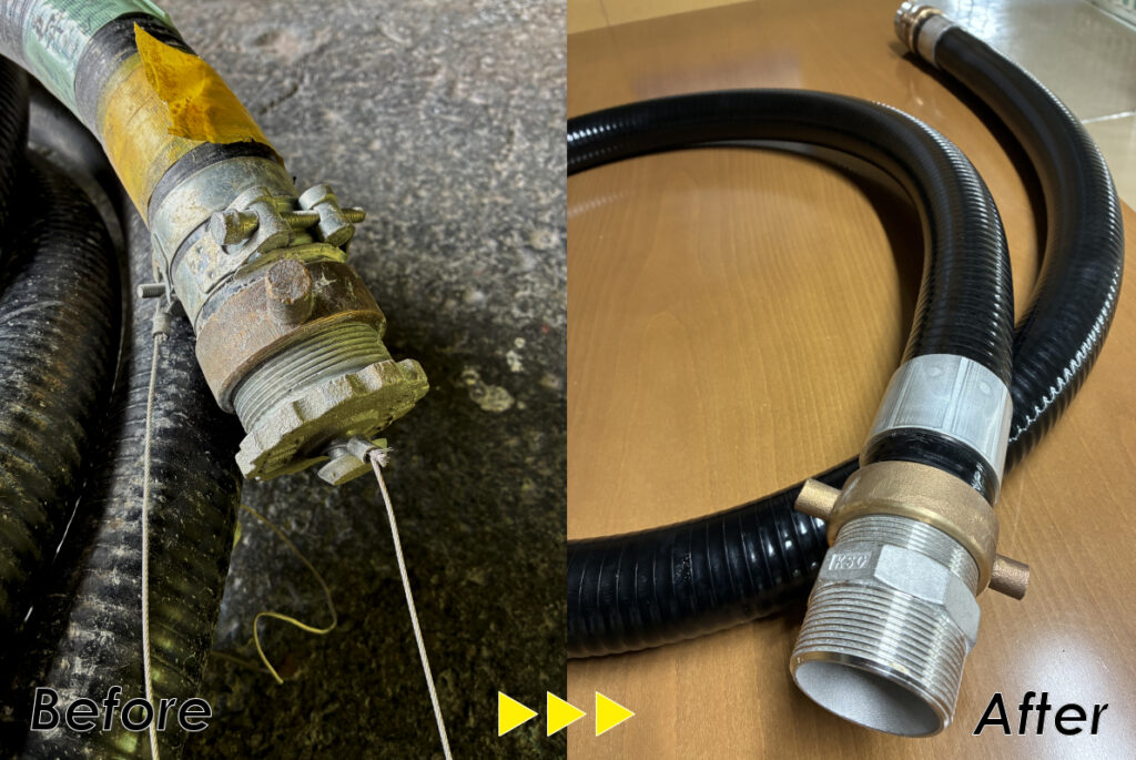 そこで、ホースバンドに代わる、より確実で均一な締結方法を検討する中で、3インチサクションホースへの加締め対応について、プロフレックスへ相談されました。