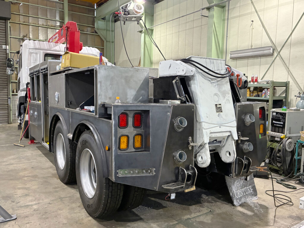 レッカー車の架装や修理において、油圧ホースの製作や経年劣化したホースの交換は欠かせない作業です。