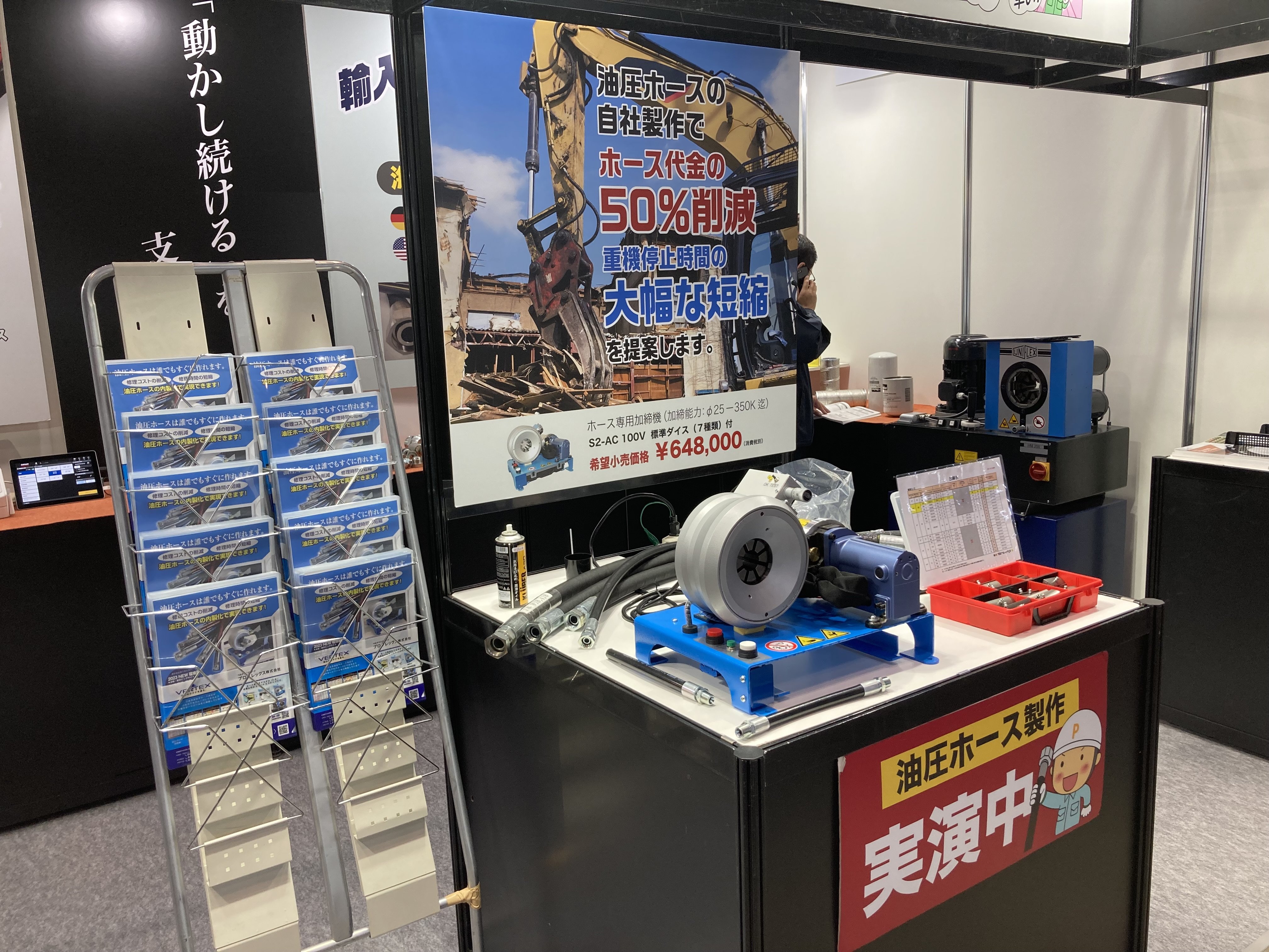 両展示会では、安価でコンパクトな加締機『S2-AC』をご紹介し、ホース内製化による「ホース製作費用」と「機械のダウンタイム」を大幅に削減できるサービスをご提案いたします。