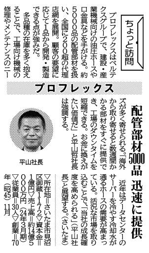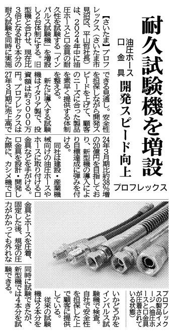 媒体名 : 日刊工業新聞掲載日 : 2024年7月4日記事概要 : 配管部材5000品 迅速に提供