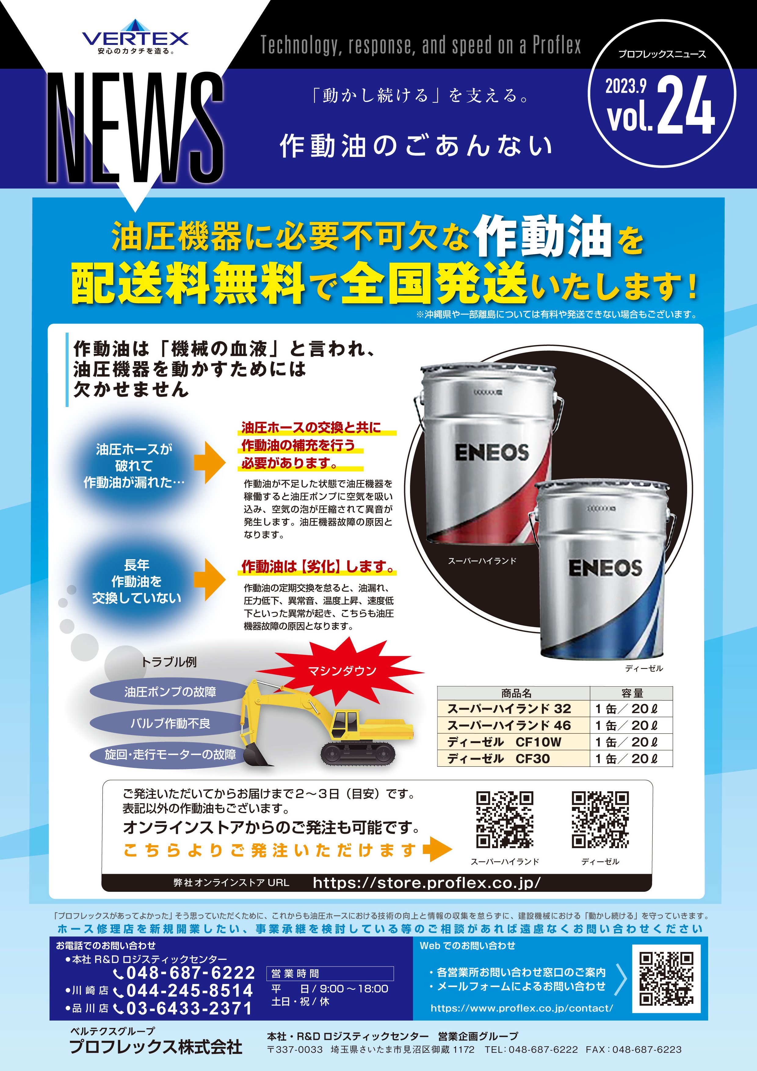 作動油配送料無料キャンペーンのお知らせ(vol.24)
