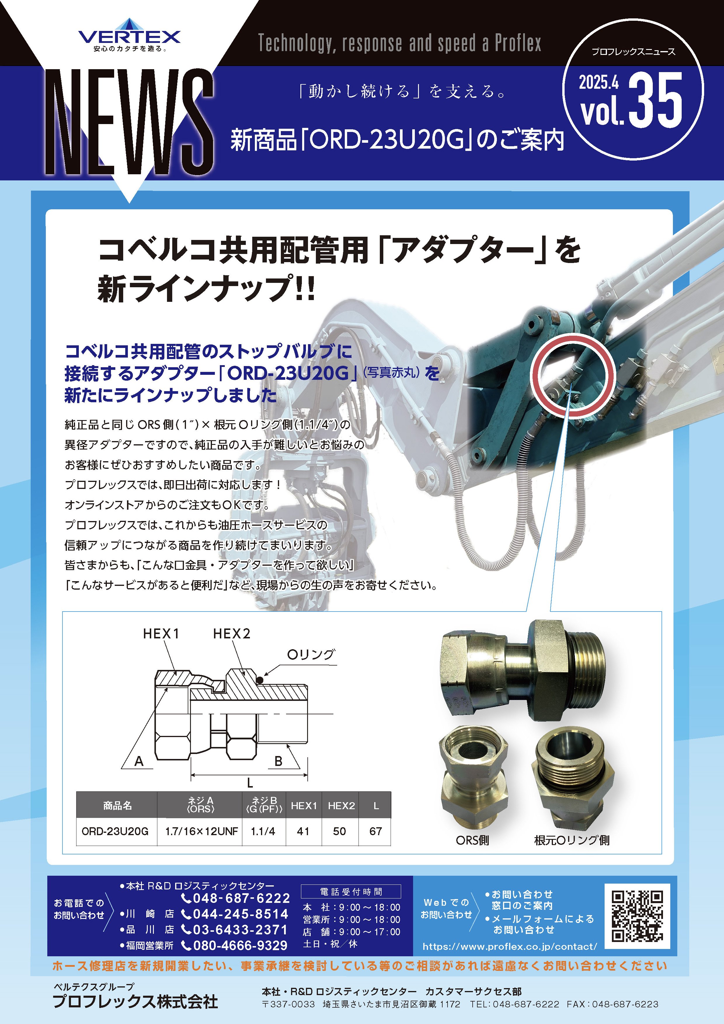 プロフレックスでは、これからも油圧ホースサービスの信頼アップにつながる商品を作り続けてまいります。
