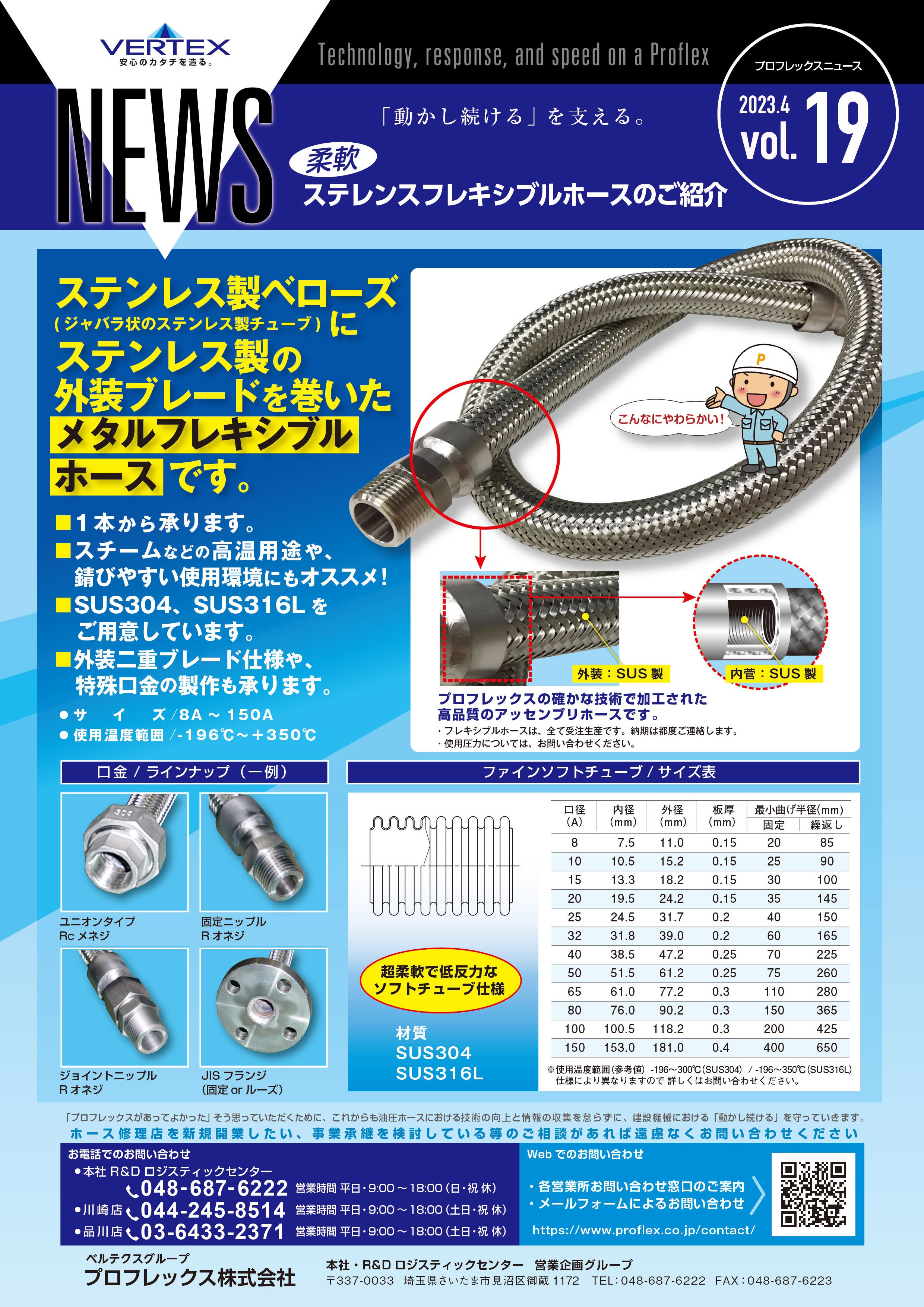 ステンレス製フレキシブルホースのお知らせ(vol.19)