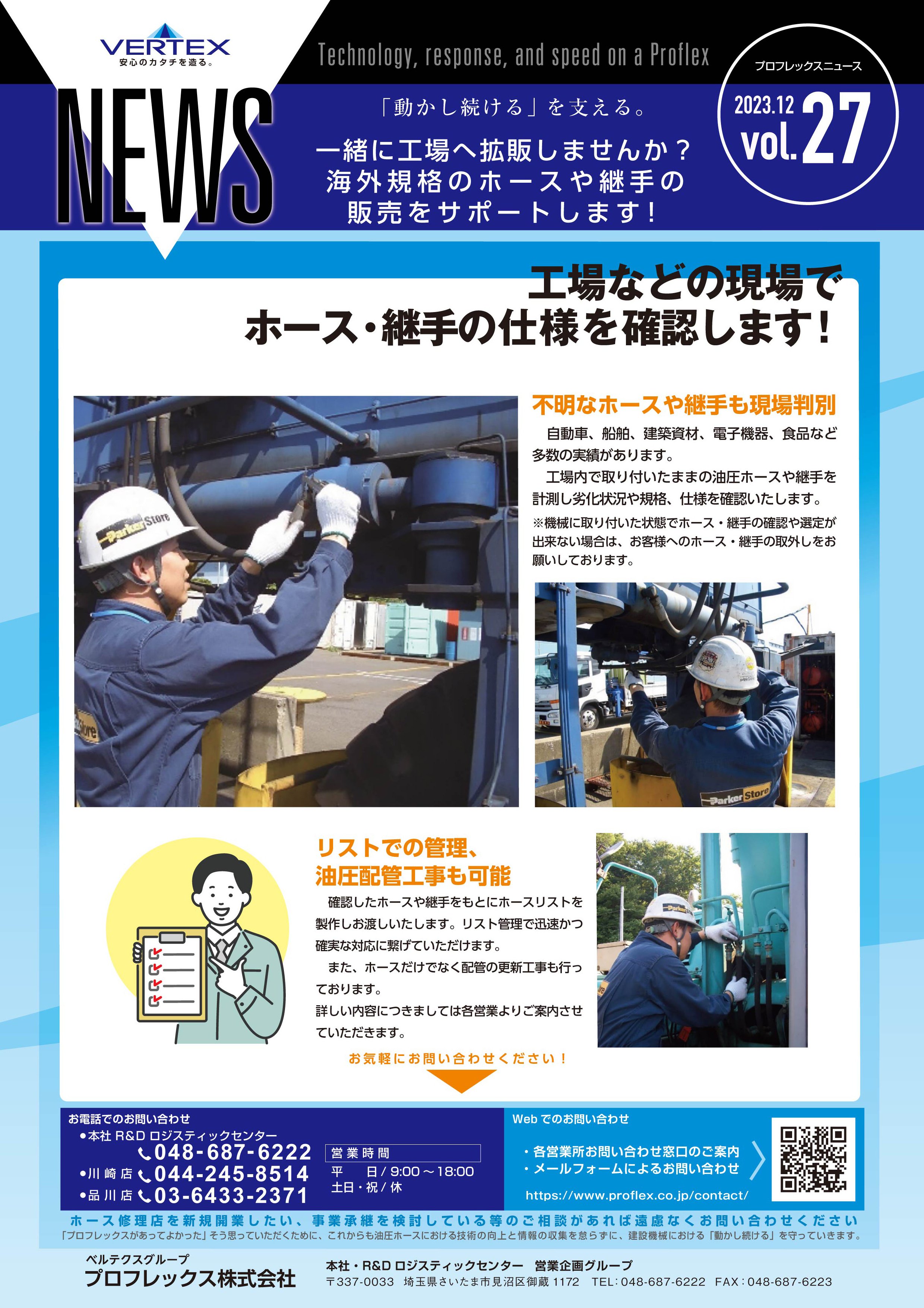 各種工場内のホース、継手の選定サポートします!のお知らせ(vol.27)
