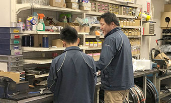 突然のホース破れに対応する「油圧ホース即時製作サービス」では、UNIFLEX HM-200や大口径に対応するUNIFLEX HM-325iの加締機を利用した修理が可能です。JIS規格の国内品はもちろん、海外製の機械に対応した海外規格の金具にも対応が可能です。