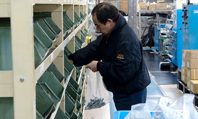 注⽂内容を基にピッキング作業を⾏っていきます。多くの製品がありますが、品番を確かめながら番号通りに取るだけなのでご安⼼ください。