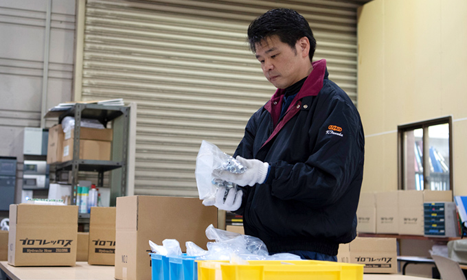 「現場で使っている油圧ホースが壊れてしまったので、代用品がほしい」お客様からのこうしたご要望を、当社の営業担当者がお伺いします。